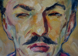 Ritratto d'uomo, olio su tela, cm 70x50, siglato KM in alto a destra, entro cornice.