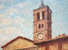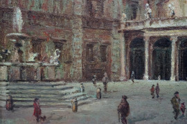 Santa Maria in Trastevere, olio su tela, cm 20,5x25,5, firmato e datato, entro cornice