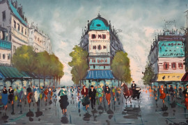 Scorcio di Parigi, olio su tela, cm 50x70, firmato, entro cornice.