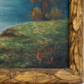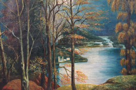 Scorcio fluviale, olio su tela, cm 35x48, firmato, entro cornice.