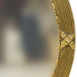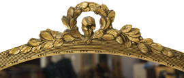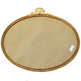 Specchiera ad asseto ovale in legno intagliato e dorato, inizi XX secolo, cimasa traforta misure ingombro cm 61x75, (difetti)