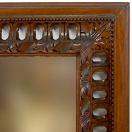 Specchiera di linea rettangolare, cornice in legno scolpito e intagliato a giorno, XX secolo, cm 98x76, (difetti)