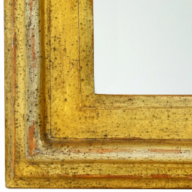 Specchiera di linea sagomata in legno dorato, inizi XX secolo, ingombro cm 90x70, (difetti)