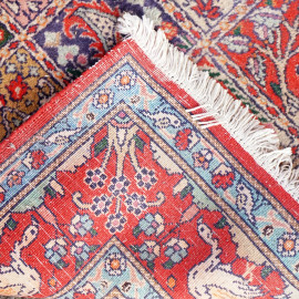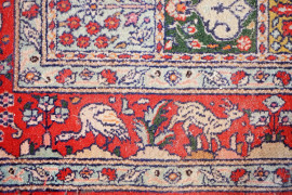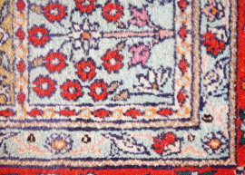 Tappeto Moud Royal, Iran, in lana annodato a mano, cm 155x99, (difetti, parti consunte).