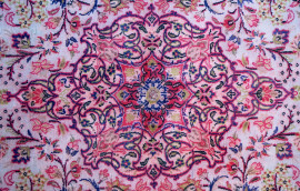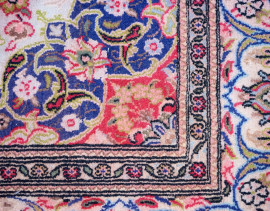 Tappeto Qum Sha Reza', annodato e lavorato a mano, cm 212x142, (difetti)