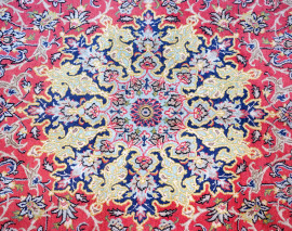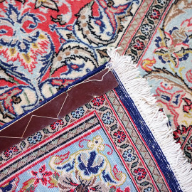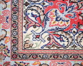 Tappeto Qum Shareza, Iran, in lana annodato a mano, cm 255x152, (parti consunte)
