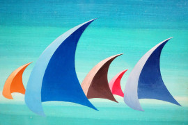 Tetti e Velieri, due dipinti a olio su cartone, cm 24,5x30, firmati Aubry, entro cornici.