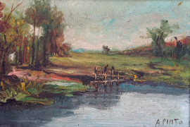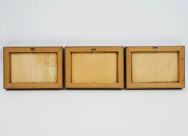 Tre dipinti raffiguranti paesaggi, olio su compensato, cm 10x14, firmati, entro cornice