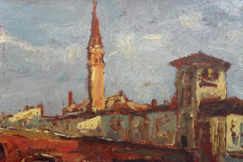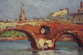 Veduta di Ponte sisto, olio su cartone, cm 24x33, firmato, entro cornice