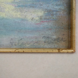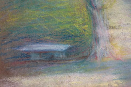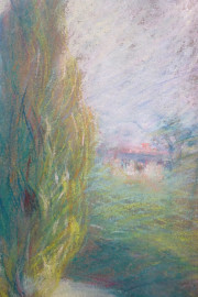 Viale con alberi, pastello su carta, cm 34x23, firmato, entro cornice