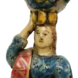 Acquaiola, lumiera antropomorfa in maiolica policroma, cm h 30x14, manifattura Caltagirone, XIX secolo, (difetti)