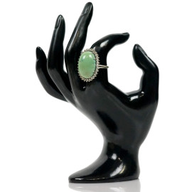 Anello in oro bianco 18 kt con turchese e zirconi, misura n. 19, peso gr. 13,5, (segni di utilizzo)