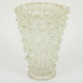 Barovier&Toso attr.a, Lotto di tre vasi rostrati in vetro, alt.max cm 22, XX secolo.