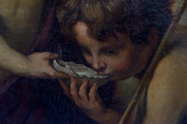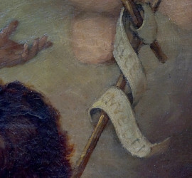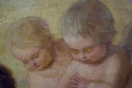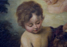 Bartolomé Esteban Murillo (Siviglia, 1618 – Cadice,1682) copia da, Gesù Bambino e San Giovannino, olio su tela, cm 55x64, fine XIX-inizi XX secolo, entro cornice.