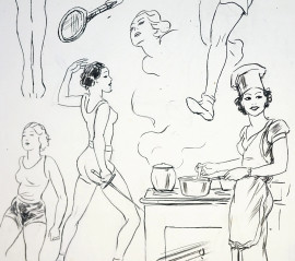 La donna protagonista, disegno a tecnica mista su carta, cm 36x19.