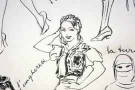 Tante donne - tante nazioni, disegno a tecnica mista su carta, cm 35,5x26.
