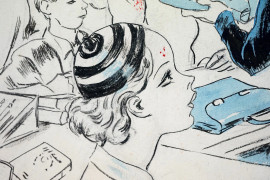 Tutto per la scuola, dipinto double face a tecnica mista su carta, cm 34x28.