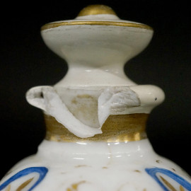 Bottigliette portaprofumo in porcellana policroma a decori floreali, XIX secolo, cm h 7,5x5x5, (difetti, rottura sull'orlo).