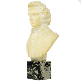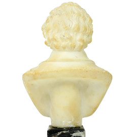 Busto di Mozart in alabastro, base in marmo nero, cm h 22, (difetti)