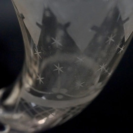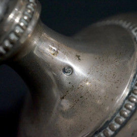 Calamaio a cornucopia in cristallo molato poggiante su base in argento, cm h 17,5x19, XX secolo.