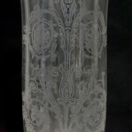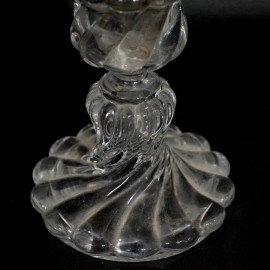 Candeliere in cristallo, Baccarat, Francia, XX secolo, base circolare a torchon con portacandela inciso, cm h 41