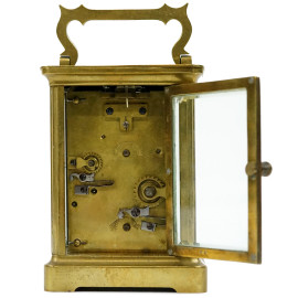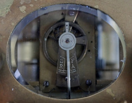 Cappuccina in ottone, metà XX secolo, doppio quadrante a numeri arabi e romani, cm h 12x8x7, (meccanismo da revisionare)