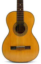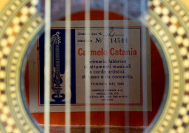 Carmelo Catania - Chitarra da “posteggia” con ondo, fasce e paletta tinte “sundblast”, tavola in abete massello, armata con corde di metallo ha un suono chiaro e potente, metà XX secolo, cm 99x35x8, (difetti)