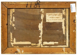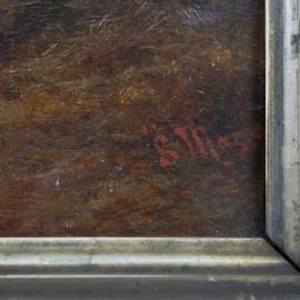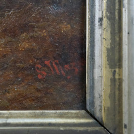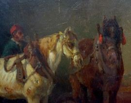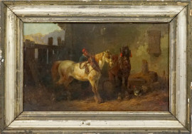 Cavalli in riposo, olio su tavola, cm 25,5x4,, firmato S. Mazza, entro cornice