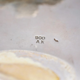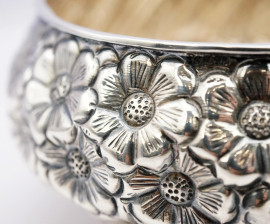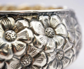 Centrino in argento sbalzato a motivi floreali, cm h 7x13, punzoni 900 A.K, probabile manifattura armena, peso gr 198