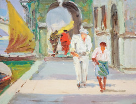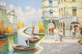 Chioggia, olio su compensato, cm 30x50, firmato, entro cornice.