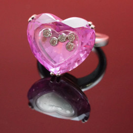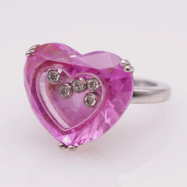 Chopard - Collezione So Happy, Anello a forma di cuore in oro 750, cristallo e cinque diamantini, misura 12-13, peso lordo gr 12,7.