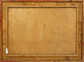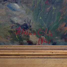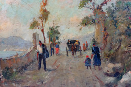Viale con figure, olio su compensato, cm 54x79, entro cornice