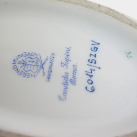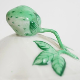 Cofanetto in porcellana Herend Hungary, Candida Tupini, XX secolo, decorato in monocromia verde a tralci di vite con pampini e grappoli d'uva, coperchio con presa a foggia di fragolina, profilo dorato, cm h 10x20x10