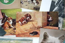 Collezione di n.30 cartoline raffiguranti cani e gatti, cm 10,5x15, (lievi difetti)