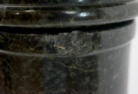 Colonna in marmo verde poggiante su base circolare, XX secolo, cm h 110,5, (lievi difetti)
