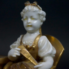 Concertino, tre sculture in porcellana bianca con particolari dorati, misure cadauno cm 13x12,5x8, marcati con N coronata sotto la base.