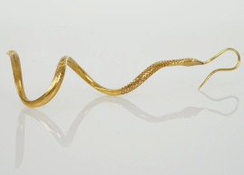 Coppia di orecchini pendenti a forma di serpente in oro giallo 18 kt, lunghezza cm 7,5, peso gr.9,6