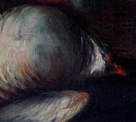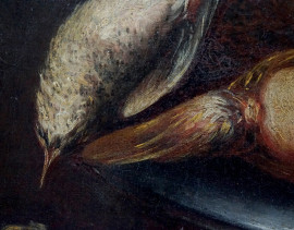 Natura morta con selvaggina, olio su tela, cm 63x75,5, entro cornice, (lievi difetti)