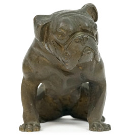 Due Bulldog in bronzo e acciaio cromato, XX secolo, altezza max cm 8,5