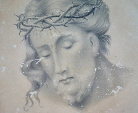 Ecce Homo, disegno realizzato a matita su carta, cm h 16,5x15,5, firmato e datato, entro cornice, (difetti)