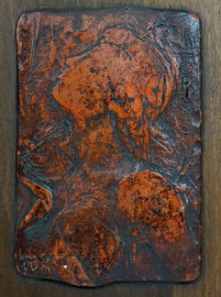 Esposizione d'arte internazionale di Torino (1902), Due cere applicate su tavola raffiguranti soggetti diversi, misure max cm 18,5x15, (difetti)