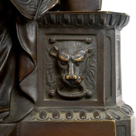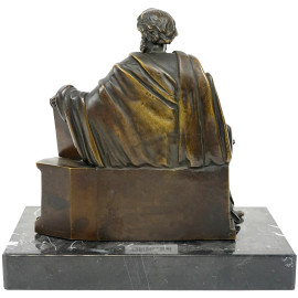 Filosofo, scultura in bronzo brunito, poggiante su base in marmo nero, XX secolo, cm h 25
