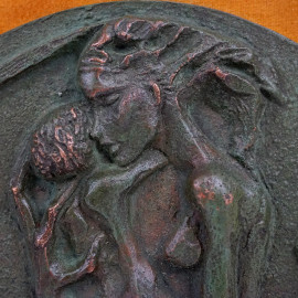 Senza titolo, placca in bronzo , diametro cm 28, entro cornice.