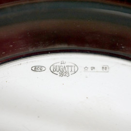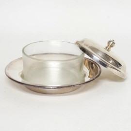 Formaggiera in vetro e argento 800, Bugatti, XX secolo, cm 9x14.