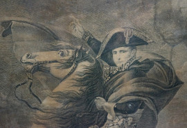 Gilbert Antonio, Napoleone il Grande al Monte S. Bernardo, 1809, incisione, cm 62x41,5, entro cornice, (difetti)
