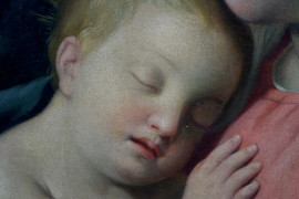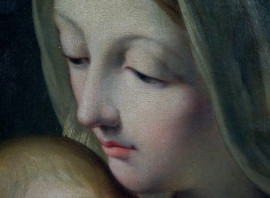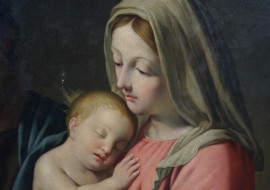 Giovanni Battista Salvi detto il Sassoferrato (1609–1685) copia da, Sacra famiglia, olio su tela, cm 84,5x90, XIX secolo, entro cornice, (difetti sulla tela)