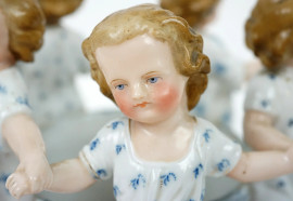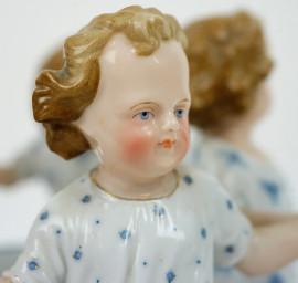 Girotondo, centrotavola in porcellana policroma, cm h 17, marca sotto la base, (lievi difetti)