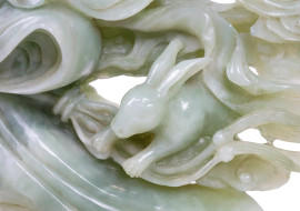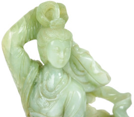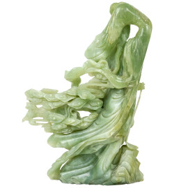 Grande Guanyin in giada, arte orientale, XX secolo, cm h 45, (difetti)