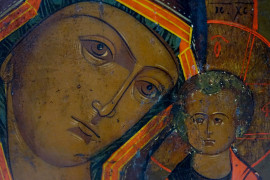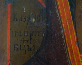 Icona raffigurante "Madonna Madre di Dio di Kazan", tempera su tavola, cm 29x23, Russia, XIX secolo, (difetti).