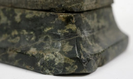 Il "Marzocco", scultura in marmo verde, cm h 19x10x7,5, XX secolo, (difetti e restauri)